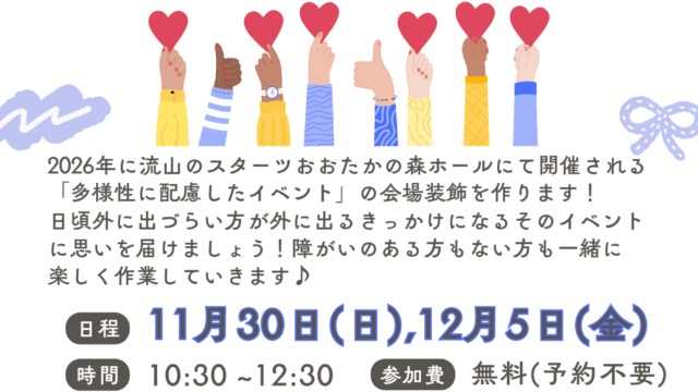 毎年12/3~12/9は障害者週間です💡それに先駆け、障がいのある方もない方も一緒に参加できるボランティア活動の場をつくりたいと思います!