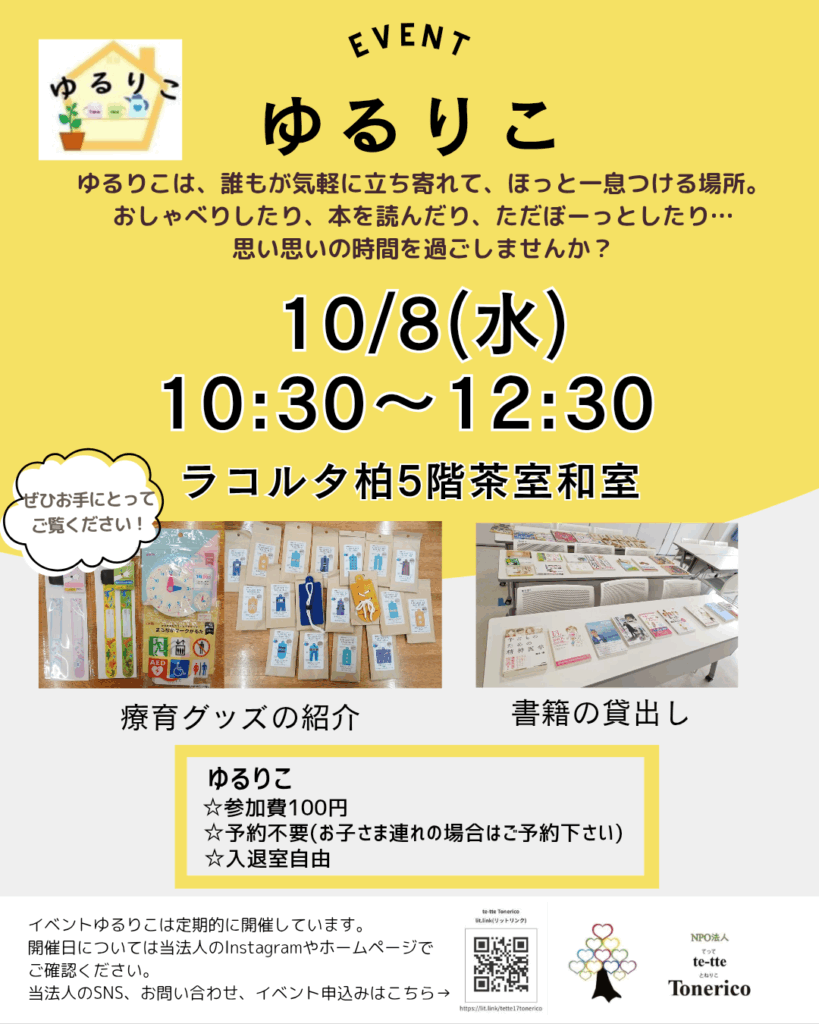 ゆるりこは、誰もが気軽に立ち寄れて、ほっと一息つける場所。おしゃべりしたり、本を読んだり、ただぼーっとしたり…思い思いの時間を過ごしませんか?📖