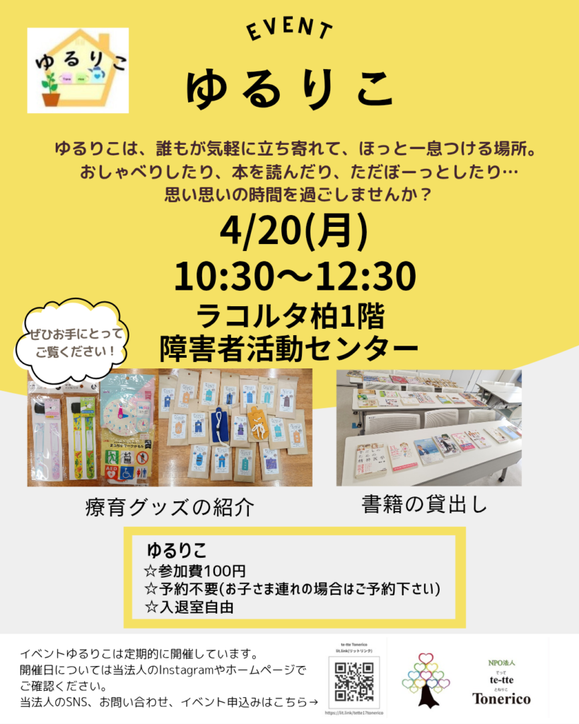 ゆるりこは参加者の皆さまにゆるっと過ごしていただき、心の荷物を降ろし、気分転換していただくことを目的としたイベントです 😊