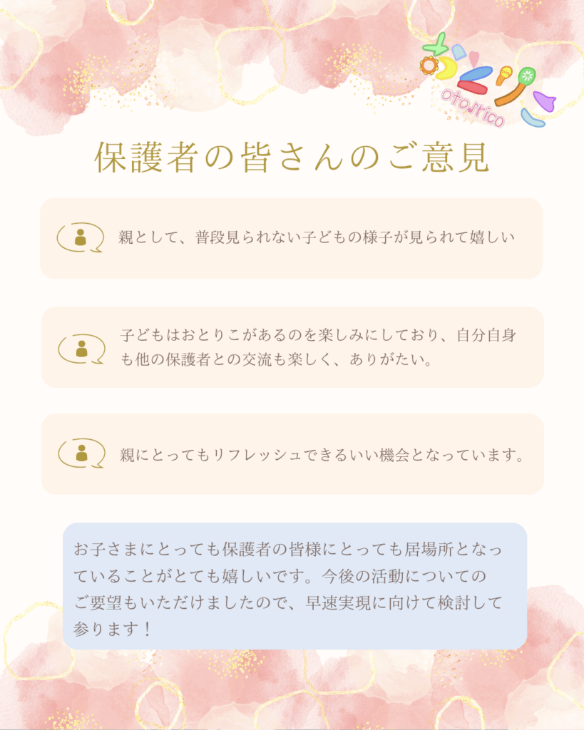 小学生以上を対象に開催しております音楽サークルおとりこ。今回は保護者の皆様のお話を伺う保護者会を開催しました❕